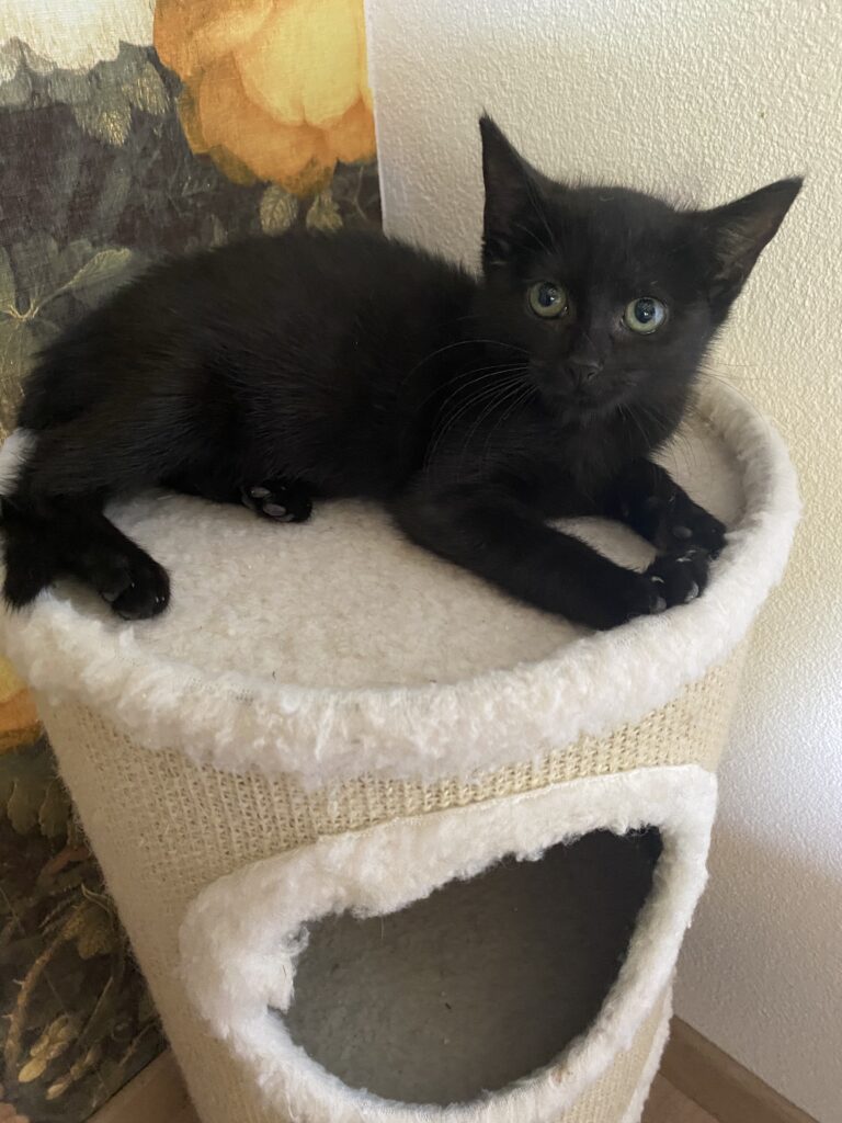 Nora lebte mit ihrer Mama in einem größeren Katzenrudel auf einem Feld am Ortsrand. Insgesamt 15 Katzenkinder mit ihren Müttern konnten dort gerettet werden.